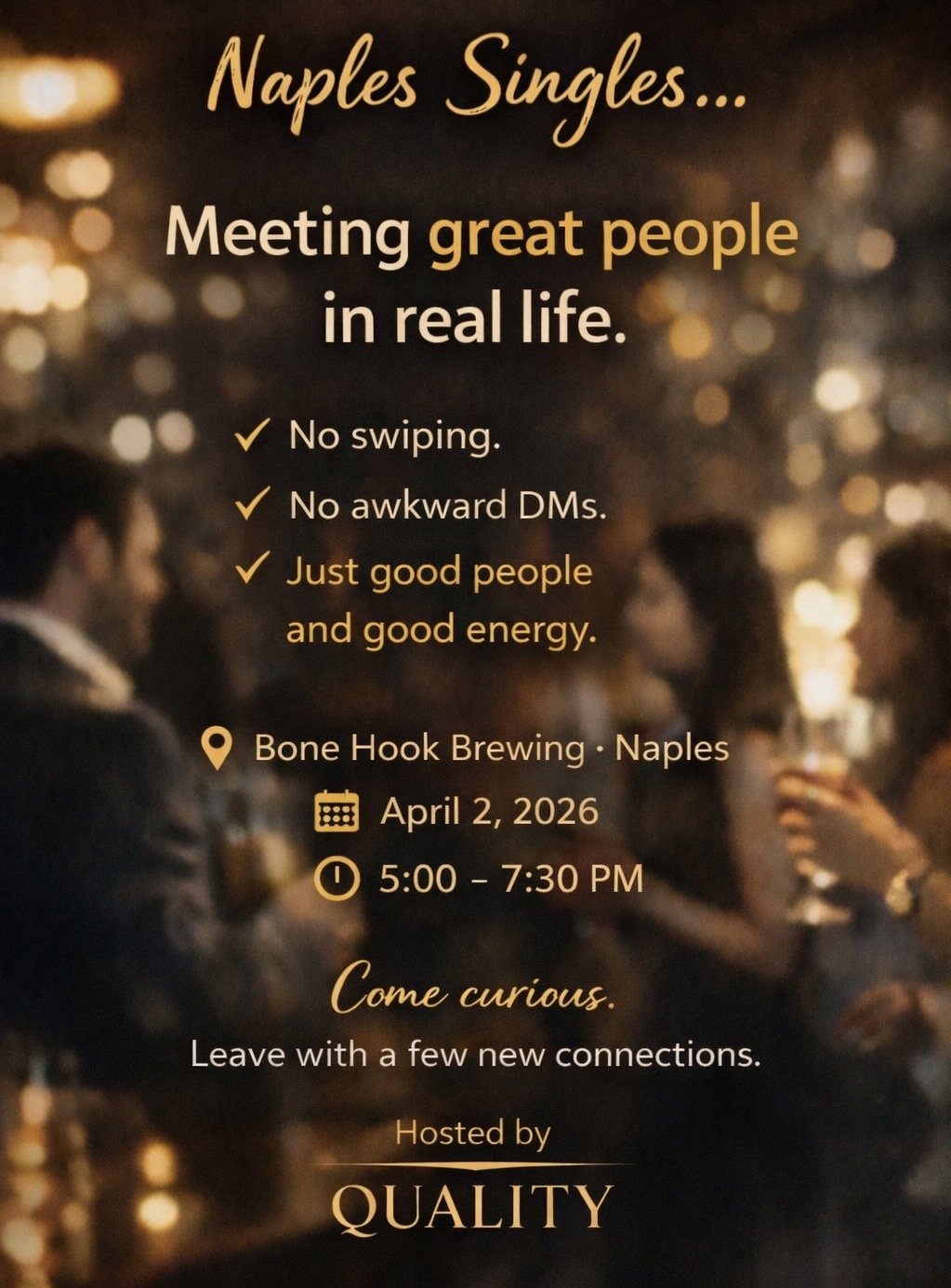 This is QUALITY's first-ever Naples event and we couldn't be more excited to kick things off at Bone Hook Brewing!